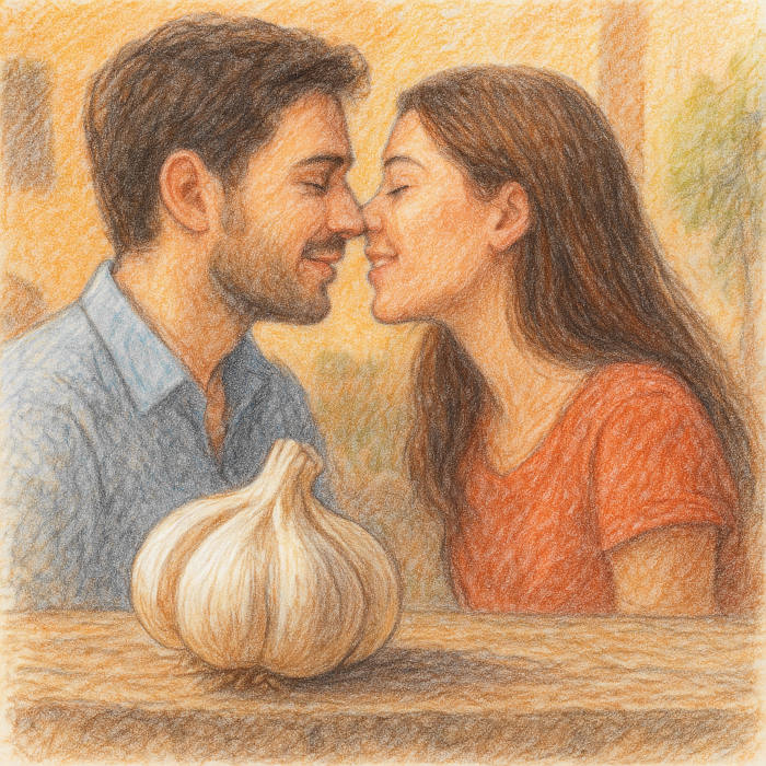 Stell dir also eine Knoblauchzehe vor, so groß wie eine Walnuss – ohne stechenden Geruch, ohne Schärfe, dafür mit einem fein süßlich-nussigen Aroma. Und vor allem: ohne jene sonst üblichen Ausdünstungen nach dem Genuss. Es ist, wie die Italiener sagen, ein Aglio del Bacio – ein Kuss-Knoblauch, der das Hauptproblem anderer Knoblauchsorten schlicht aushebelt.