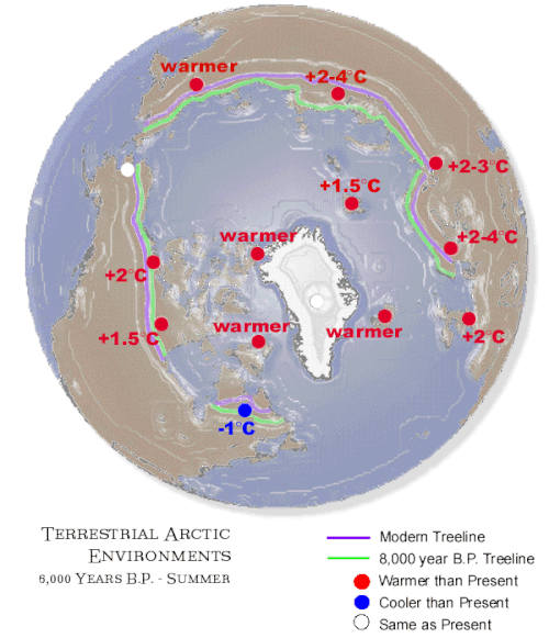 Sie gilt als das Klimaoptimum des Holozäns, eine Zeit relativ hoher Temperaturen und Feuchtigkeit, mit regional bis zu 2–4 °C höheren Sommertemperaturen als heute in Nordeuropa (siehe Grafik 1 unten). Begüstigt war diese Warmzeit durch die sogenannten Milanković-Zyklen, die ich gesondert thematisiert habe.