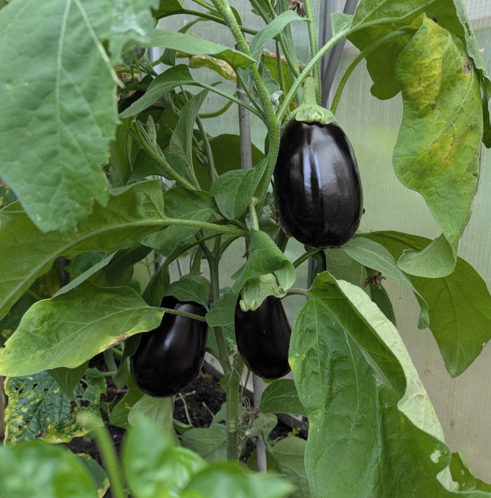 → Kleingarten-Anbau unter Glas oder Folie und der Hinweis: „Die Eierfrucht enthält einen beachtlichen Anteil an Mineralstoffen. Sie soll auch eine gewisse Heilkraft gegen Rheuma und Nierenleiden besitzen.“ [Das war mit bis dato unbekannt.]
