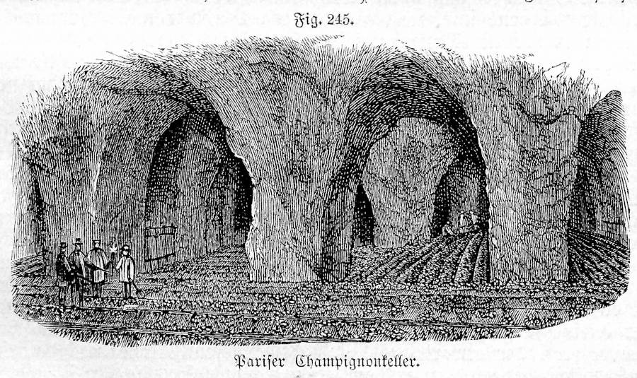 Mein eigenes Interesse an solchen Anlagen entstand ursprünglich durch gartenbauliche Literatur. Dort wurde berichtet, dass die Pariser Marktgärtner des 18. Jahrhunderts die unterirdischen Anlagen unter Paris zum Champignonanbau nutzten. Das erschien mir bereits damals bemerkenswert (mir ist viel an wirtschaftlicher Literatur des 19. Jahrhunderts bekannt) – denn gleichzeitig heißt es, diese Anlagen seien lediglich Nebenprodukte des Kalksteinabbaus gewesen, mit dem die Stadt über Tage gebaut wurde, was in den besagten Bericht über den Pariser Champignonanbau eine merkwürdige Erwähnung fand…