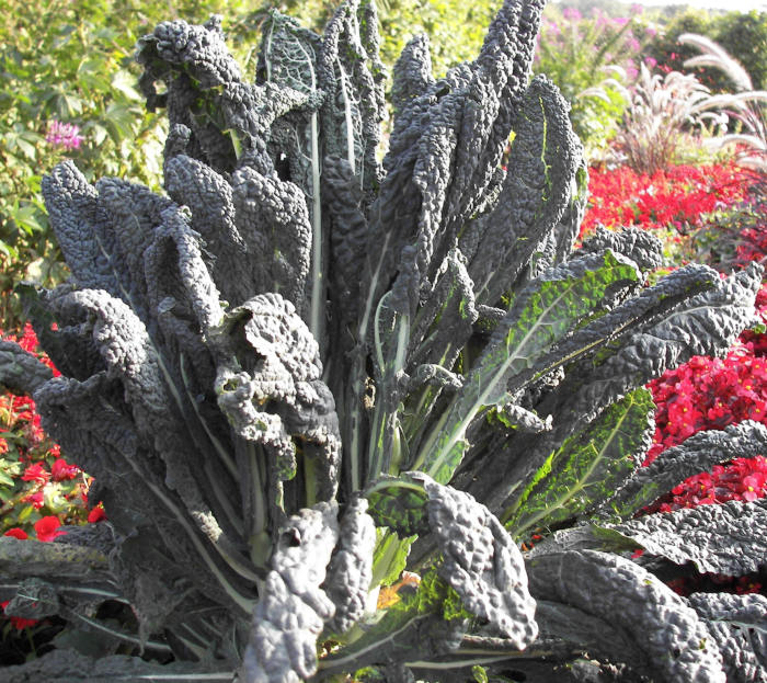 Ich selbst werde dieses Jahr auf Palmkohl setzen* – eine elegante Sonderform innerhalb der Grünkohl-Varietäten (Bild unten). Er wächst rasch und üppig, hat ein schönes Blattbild und lässt sich vielfältig verwenden. *Wenn ich die Jungpflanzen bekomme.