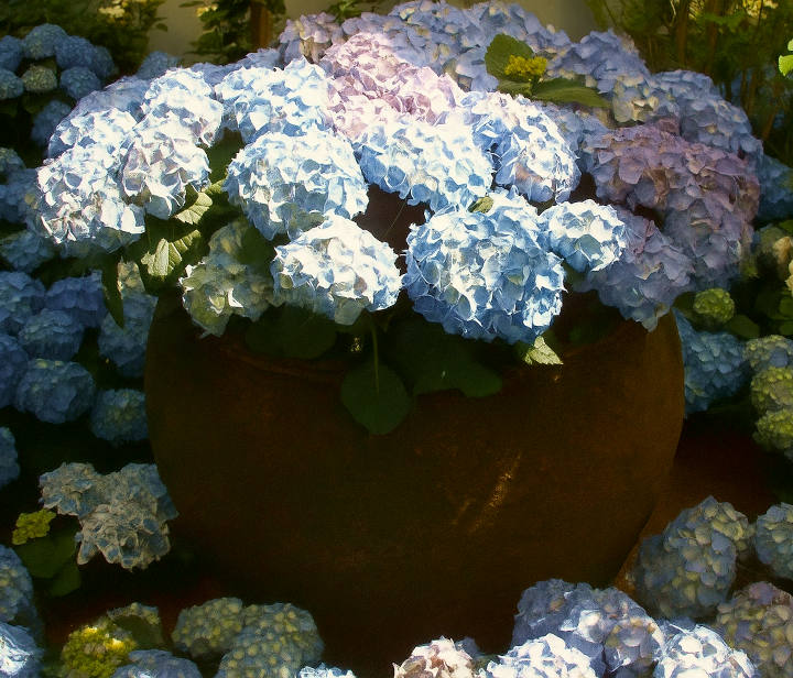 Zwar haben die Sträucher auch dann eine gewisse Fernwirkung, wenn sie weiter hinten im Garten stehen – besonders die weiß oder hellblau blühenden Sorten – doch aus der Nähe betrachtet entfalten sie ihre ganze Schönheit. Gerade deshalb sind Hortensienblüten, ob frisch geschnitten oder getrocknet, besonders dekorativ. Das gilt ebenso für ihre Verwendung in floristischen Arrangements.