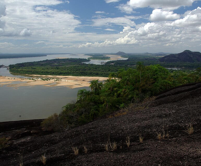 [2] Der Orinoco, einer der mächtigsten Ströme Südamerikas, fungiert als natürliche Trennlinie, die die vielfältigen Landschaftsformen Venezuelas prägt. Nördlich des Flusses erstrecken sich die weiten, savannenartigen Llanos, flache Ebenen, die in der Regenzeit überschwemmt und in der Trockenzeit von trockenem Grasland dominiert werden. Südlich des Orinoco erhebt sich das Guayana-Hochland mit seinen charakteristischen Tafelbergen (Tepuis) und dichten tropischen Regenwäldern, die in das Amazonasbecken übergehen. Alexander von Humboldt, der den Orinoco zwischen 1799 und 1804 bereiste, beschrieb den Fluss als Lebensader, die nicht nur ökologische Zonen verbindet, sondern auch die kulturelle und natürliche Vielfalt der Region widerspiegelt. Seine Beobachtungen, etwa im Zusammenhang mit dem Casiquiare-Kanal, unterstreichen die Rolle des Orinoco als Bindeglied zwischen den kontrastierenden Landschaften der Llanos und des Regenwald-Hochlandes.