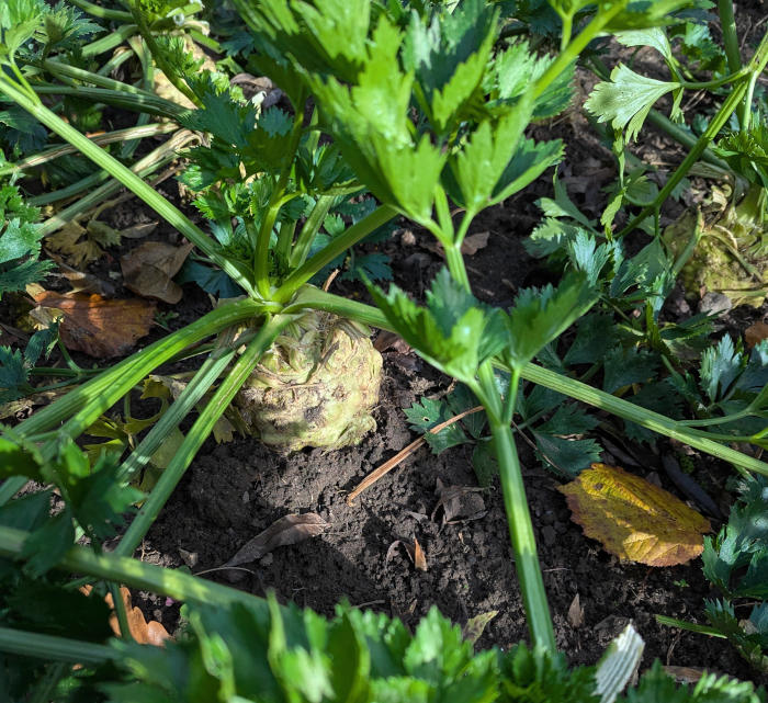 Gute Nachbarschaft: Sellerie neben dem Gewächshaus