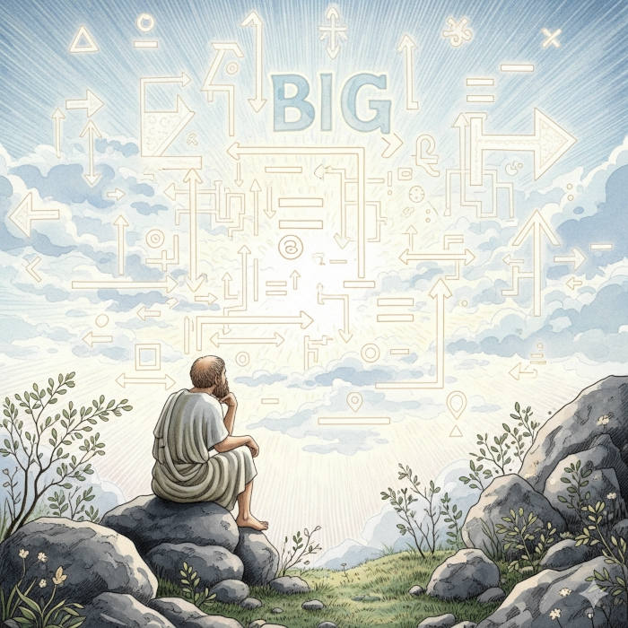 🎯 Eine These in der Philosophie ist eine grundlegende, umfassende Behauptung oder eine Lehre. Sie ist nicht mit empirischen Mitteln (Experimente, Daten, achäolog. Artefakte) widerlegbar, sondern wird durch Argumentation und logisches Denken begründet. Sie dient dazu, ein großes, übergeordnetes Bild zu zeichnen und dem Phänomen einen tieferen Sinn zu geben.