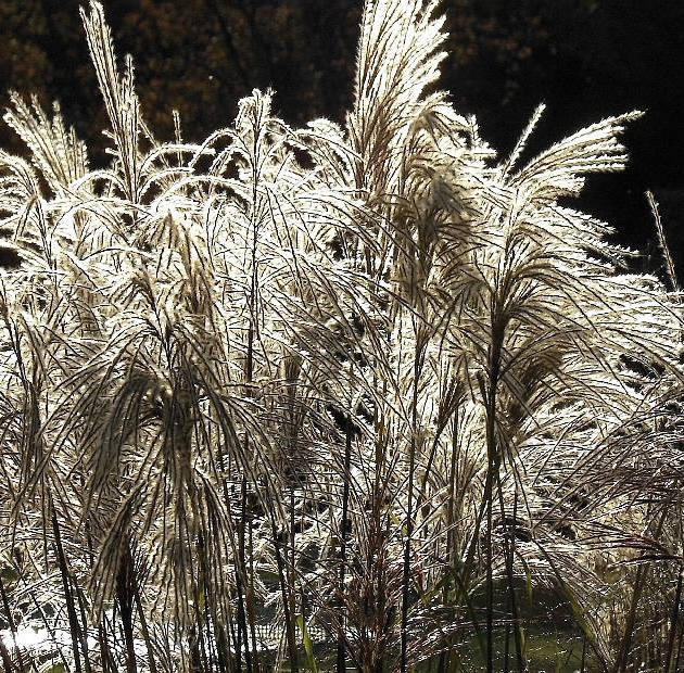 - Susuki-Gras – Miscanthus sinensis, das Chinaschilf (Bild oben), deren silbrig weiche Rispen an Herbstwinde erinnern