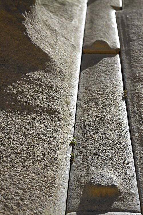 [1] Zyklopenmauerwerk: Auch als polygonaler Verbund bezeichnet; eine antike Bautechnik, bei der unregelmäßig geformte, oft tonnenschwere Steinblöcke ohne Mörtel so präzise ineinandergefügt werden, dass die Fugen kaum sichtbar sind. Der Name leitet sich aus der griechischen Mythologie ab, da man später glaubte, nur die einäugigen Riesen (Zyklopen) hätten die Kraft besessen, derart massive Gesteinsmassen zu bewegen. In Südamerika (z. B. Ollantaytambo) zeichnet sich dieses Mauerwerk zudem durch eine extreme Erdbebenfestigkeit aus.